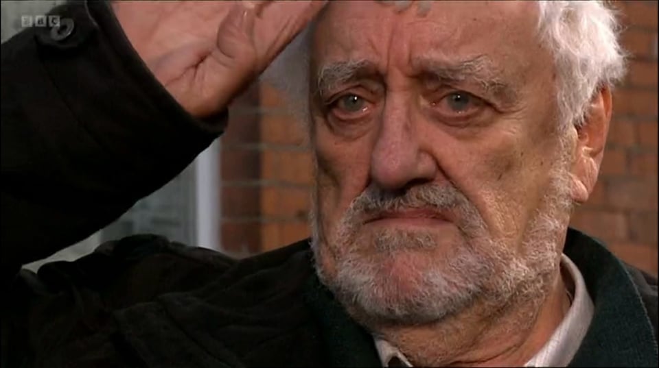 It’s just one of a score of amazing moments from Cribbins in what may also be his best performance in Doctor Who. They range from the whistle-like way he says “Merry Christmas” to his barked, appalled invective at a soldier who threatens his grandchild: “Call yourself a soldier? Pointing guns at innocent women?” ↩