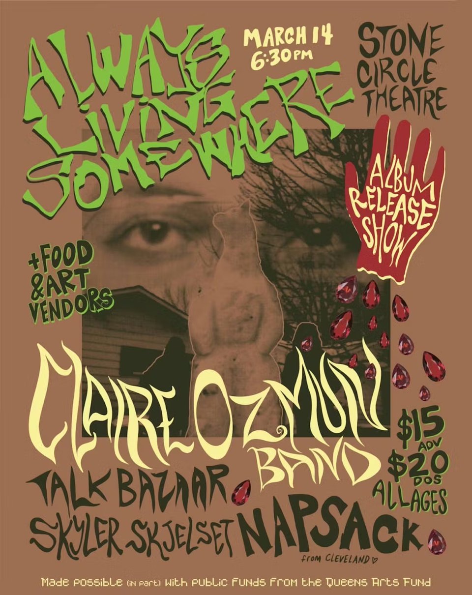 3/13: Always Living Somewhere from Claire Ozmun Band pre-save the album and order a cassette
