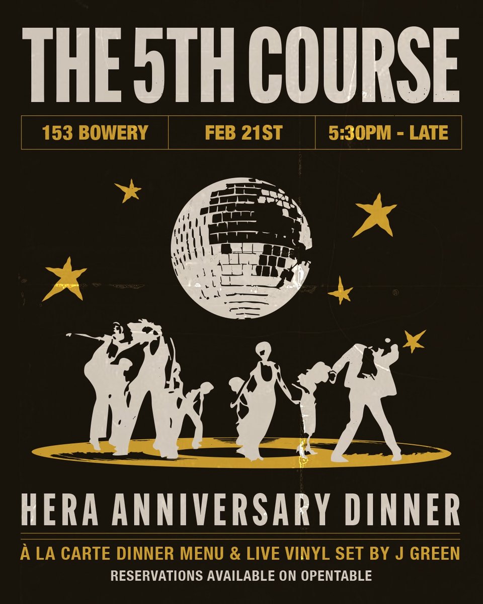 Saturday 2/21: HERA anniversary dinner @ 153 Bowery tix