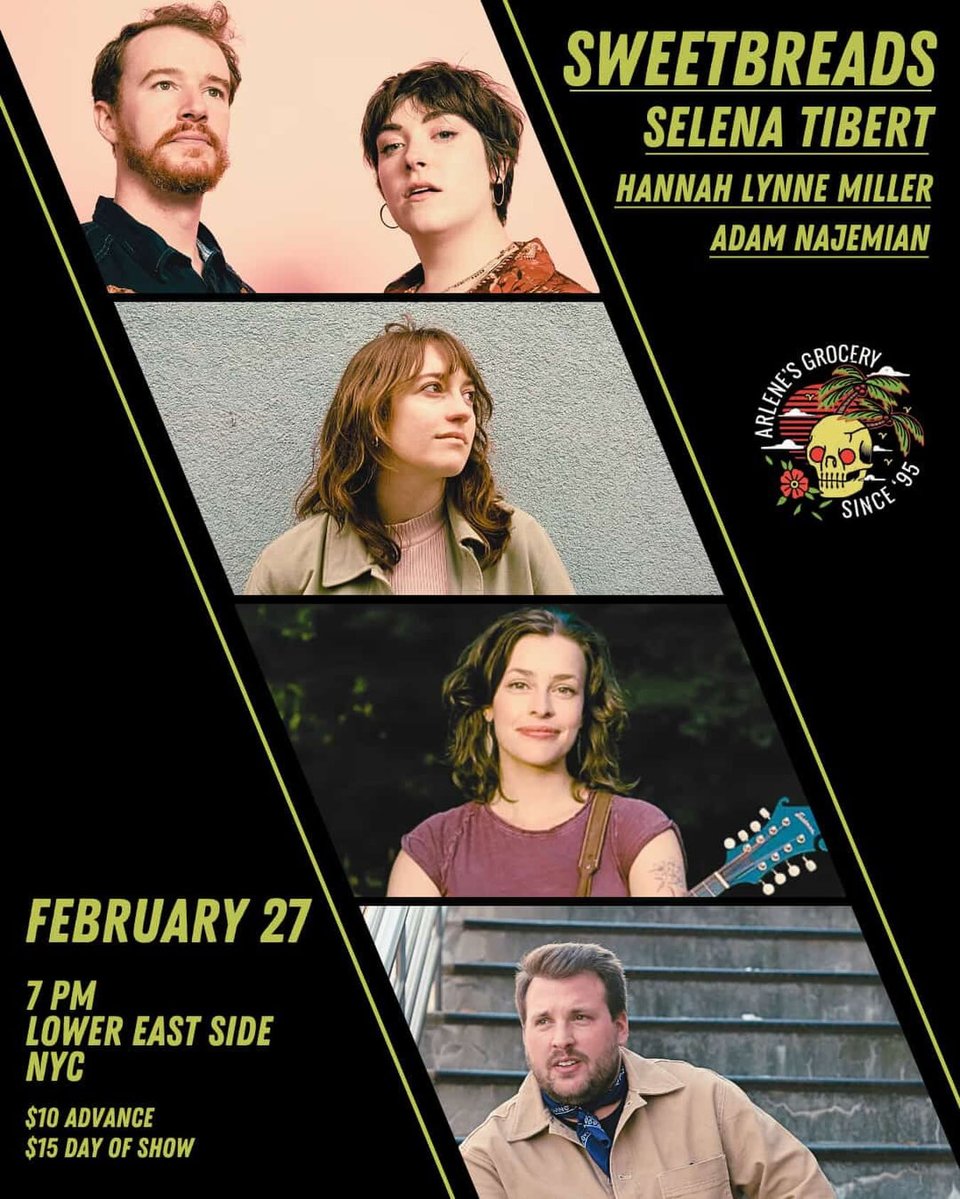 Friday 2/27: Sweetbreads, Selena Tibert @ Arlene’s Grocery tix