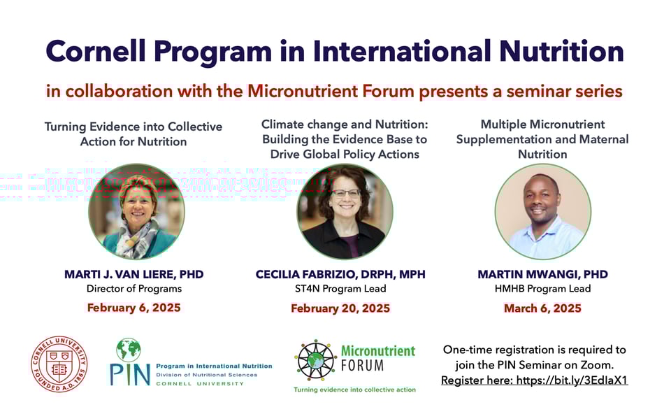 We are pleased to share this newsletter with updates and activities in and around the field of international nutrition and global health. Please join us this Thursday as Dr. Martin Mwangi of the Micronutrient Forum joins the PIN Seminar to discuss the work of the Healthy Mothers Healthy Babies Consortium.