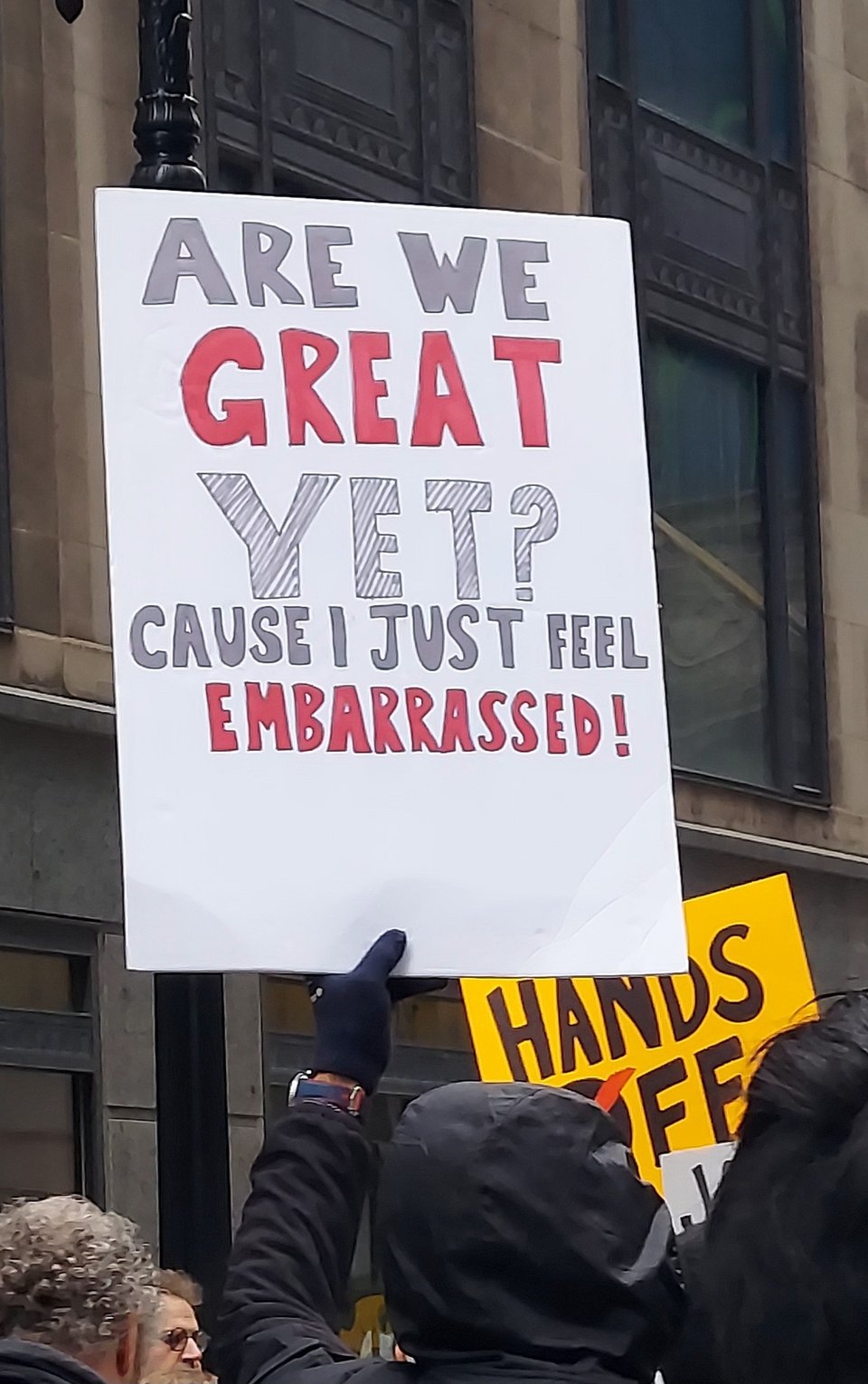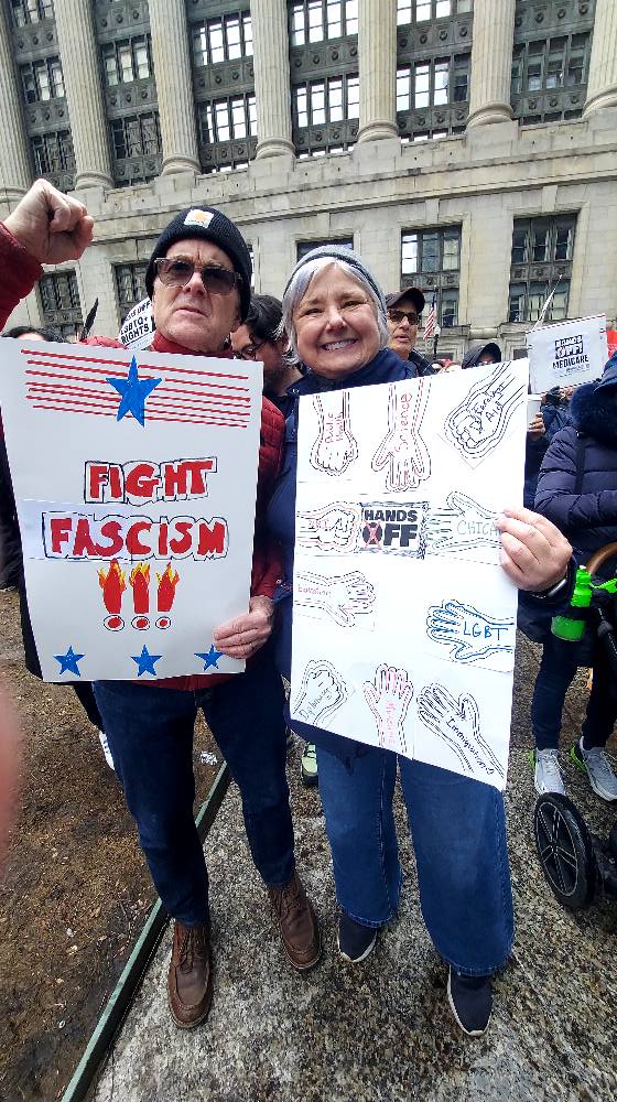 The protests were very well-attended and peaceful, showing us all that the country is getting increasingly riled up by the fast and furious pace of lawless and inhumane actions taken by this administration, in less than 11 weeks. The crowd I witnessed in Chicago (and I have heard similar reports from participants in other protests) was overwhelmingly white, and older than the average age of the population. This suggests to me a couple of things: that members of the groups most likely to be targeted by this administration are feeling understandably wary of putting themselves in the streets where they can be surveilled and harassed, and that the fury demonstrated by the white folks who participated cannot be good news for the administration.