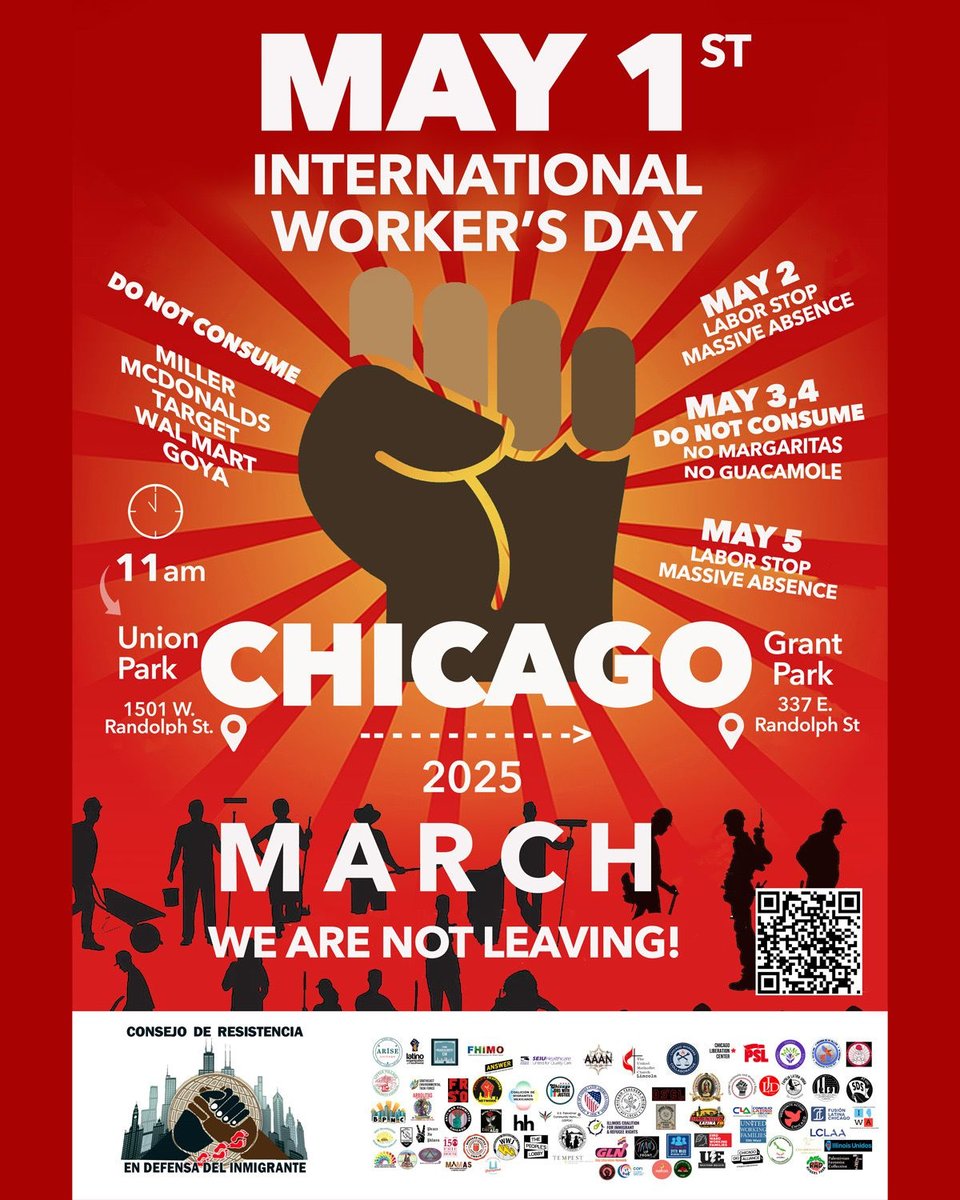 This year, organizers are calling for a day of protest and action in support of working people, especially immigrants. Like the April 5 protests, this one is being supported and co-sponsored by many organizations, including Indivisible, 50501, the Chicago Immigrant Action Network, and others.