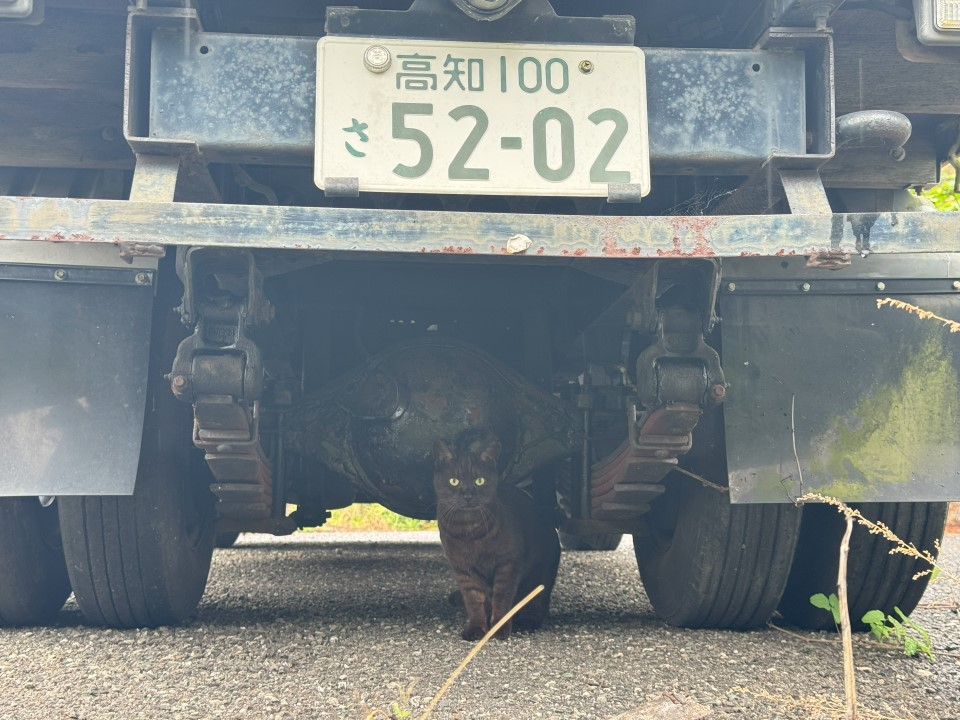 Once that was done, I took off for the Yamato Transport office nearby. Amusingly, I saw this timid fella hiding out under one of their trucks: