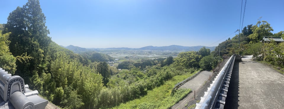 Crossing a large bridge to get into Tosa, I recognized a lot of what I was seeing because I’d used the area as a Google Street View sample to get a feeling for how easy it would be to find signage for the pilgrim trail (verdict: not easy at all). Turning right after the bridge, it was another couple of kilometers into and through town; I passed a fancy-looking supermarket and, well, how could I resist that? I bought a carton of milk tea and a red-bean bun; the cashier was super friendly, wished me a nice day in English, and gave me a straw and a napkin, so I settled in to the in-store consumption area (no, not TB) for a bit to enjoy my second breakfast. From there, it wasn’t too much farther to T35, Kiyotaki-ji, which was up a fairly steep hill from the outskirts of town, with an absolutely majestic view: