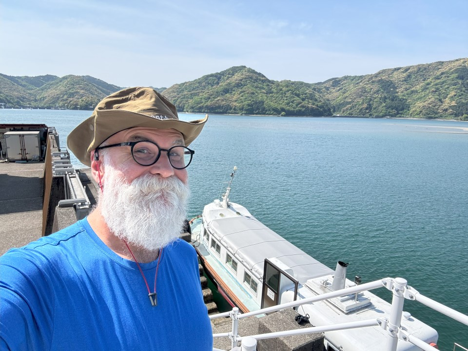 As 10 AM drew nearer, more people showed up for the ferry, all of them pilgrims. The Czech woman, the Belgian cub, and two Japanese women all got on the boat and off we went for the hour-long cruise to the trailhead for today’s hike. Amusingly, both of the Europeans had stayed at a small hostel near the ferry terminal; the owners showed up right before we took off with a huge Bluetooth speaker blasting “Africa” (yes, the Toto banger) and unfurled huge Czech and Belgian flags to wish their guests safe travels. Pretty crazy! Then, Katy Perry’s “Firework” kicked in, I decided to Google the lyrics, and I serenaded everyone with the worst karaoke I think anyone’s ever heard in Shikoku. What can I say? It just wasn’t cringe enough so I did my best to really make it happen.