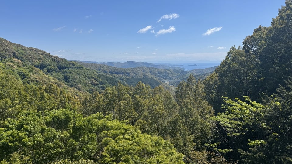 It’s a little bit difficult to see without zooming in, but you can see the newly-constructed expressway crossing a river valley - and a tiny rock just off of the beach from where I started today’s walk. There was no one else on that trail; the last kilometer and a half was narrow dirt, badly eroded, with one bridge missing & therefore kind of difficult to navigate. Totally worth it, though, even the last 200 meters or so which were nothing but steps so steep as to almost be unmanageable. At the top of the pass, a derelict gas station with two vending machines and new toilets next door, so hello, big bottle of iced coffee with milk, yum. And then it was time to get on with the rest of the day: another 12-ish kilometers, so maybe three more hours of walking. That bit was less charming; much of the second half of it was next to a busy highway, but it was good enough. A tiny train station had just installed a fancy new toilet block next door, festooned with cloth koi flags; that was much needed and a nice place to take a break briefly before eventually stopping by a post office to buy stamps (first time I’ve done that in I can’t remember how long!) and then a supermarket to buy a red beans and cream bun and an Earl Grey tea latte. Yeah, not super nutritious, but what the heck. I had meant to keep going until the convenience store another two k along, but I was hungry. When I finally did get near the convenience store, it was across the street from an enormous roadside station which seemed a far better option - but I wasn’t super hungry, so I just had a rice ball from the same excellent place as yesterday’s breakfast - the same as yesterday, even, and damn that was good, as was a bottle of locally produced black iced tea, the first time I’d seen black tea unsweetened since I arrived in Japan. Great stuff!