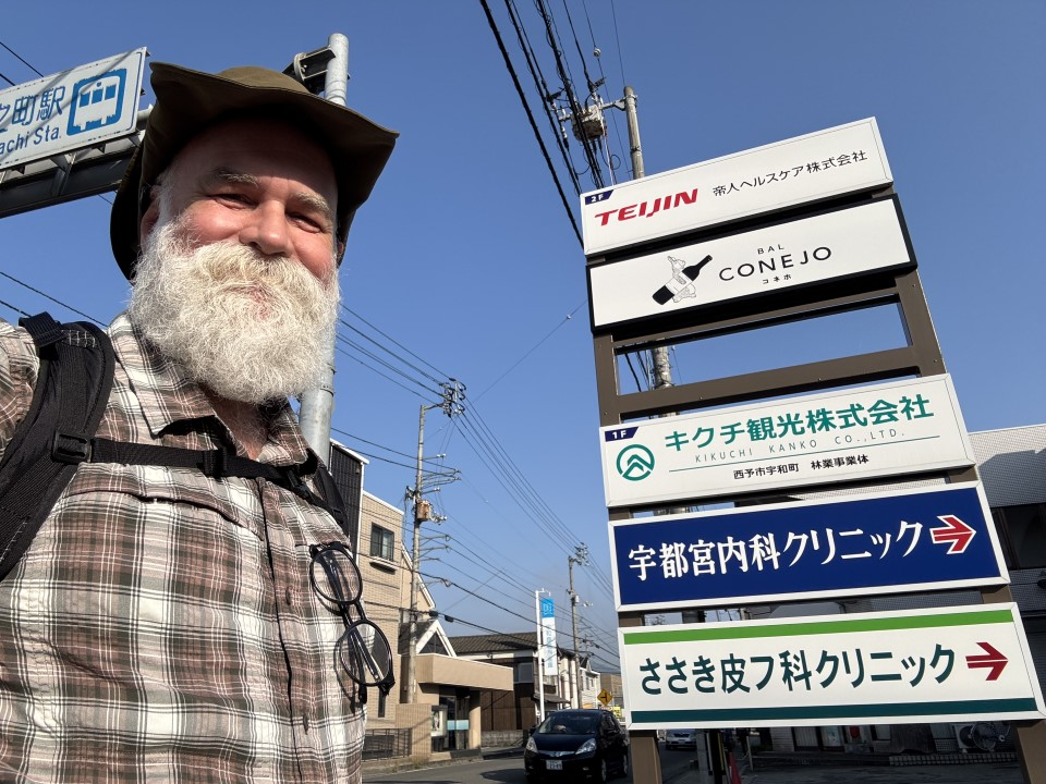 For some reason, I looked up while I was there and noticed that they had a cool ceiling in the temple - go figure! Very nice, but the overall vibe seemed to be derelict KOA, but with incense. It kind of felt like one of those random Cincinnati parks that’s there because there’s an Indian mound there, but there’s no signage explaining anything, if that makes sense. I sat down to take off all of my pilgrim gear in preparation for getting to tonight’s lodging and wound up having a conversation with a young Frenchman who was backpacking around the temples with a tent - he was maybe 23 years old and was one of those classic backpacker types out to see the world or at least parts of it, although the rare kind that seemed incredibly in tune with his surroundings, not just bouncing between hostels looking for, uh, good times (wink wink). A couple of friends of his arrived, a Melbournian and a fella from the Gold Coast; we had a nice chat for a while. The day was drawing to a close, the temple was getting ready to close up shop, and the three of them had to get to Ozu, the next major town, that evening because it had a free campground. I said my goodbyes, provided お接待 to the three of them, and left for the last k or so to my lodgings, an older ryokan with no Wi-Fi. Those dudes were fast, though, so our conversation continued until the bus stop they were headed to. I traded career advice (if you’re 23, how do you plan a life that will let you travel and provide well enough so that you can do so often?); in return, I received an osamefuda from the Frenchman as well as a story about his best day of the trail so far; I won’t repeat it here, but somethings those good times arrive out of nowhere, not because you’re at a hostel drinking with fellow travelers, but because you’re in a small town, a local catches your eye, and she knows a place where you can camp for free with your friends, so you spend the day surfing, chatting, eating cheap noodles, and being fucking free. I hope - I sincerely hope - that everyone who’s reading this has experienced times like this in their lives. There is nothing better, is there?