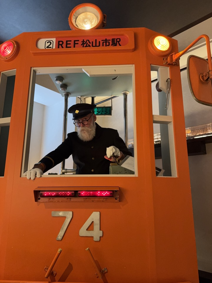 And because I’m an idiot sometimes, I took the chairlift down from the castle without looking at it first. Yikes. They’re tiny chairs with zero safety features available other than “please hold on for dear life” - no seat bars, no seatbelts, no nothing. I didn’t especially enjoy the trip down, given that my butt is significantly chonkier than the average Japanese butt and that I don’t love heights. Oh well! It was fun walking back to the hotel from there; it was obvious that that’s the one huge tourist attraction as I saw dozens of Westerners for the first time in a month there. Plenty of cute shops and restaurants, all of that; eventually, I wound up walking back through the city’s covered shopping streets, much like Nakamura and Uwajima, but the ones here were an order of magnitude more vibrant, still very much viable concerns. Decided I should probably eat some lunch, I wound up at McDonald’s for a Grimace Shake, because why the hell not? Spoiler alert: it was delicious. And then hey, hotel room, time to dress up and play train conductor for a little bit.