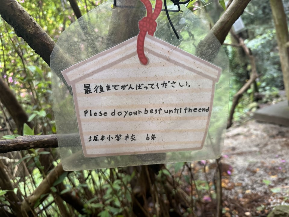 Eventually the trail turned into a tiny farm road; surprisingly, there were a dozen cars there trying to find parking as there was a funeral about to start at a small gravesite at the base of the valley. A bit further on there was a fine place to stop for a rest currently occupied by a Frenchman from Normandy; a homeowner had set up a bench with a phone charger, a water tap, and a toilet. Luxury! I stopped and chatted for a bit, packed away my rain gear as it’d finally stopped raining, and then kept going. Honestly, it was just going to be another few kilometers of road walking; I wanted it to be over with. And then sure enough, I found tonight’s lodging, which kind of feels like Buddhist summer camp to me (it’s three buildings constructed with wood from the holy mountain, Koyasan, in the rooms), complete with a pilgrimage supply shop, and checked in. From what I can tell, tonight’s guests appear to be me as well as a high school baseball team (there’s apparently a huge sports complex very close by, which is their backup business when pilgrims are few and far between). It’s literally across the street from T46, so after showering and getting all my gear charging and/or drying, I put on more respectable clothes, put on my pilgrim gear, and headed across the street.