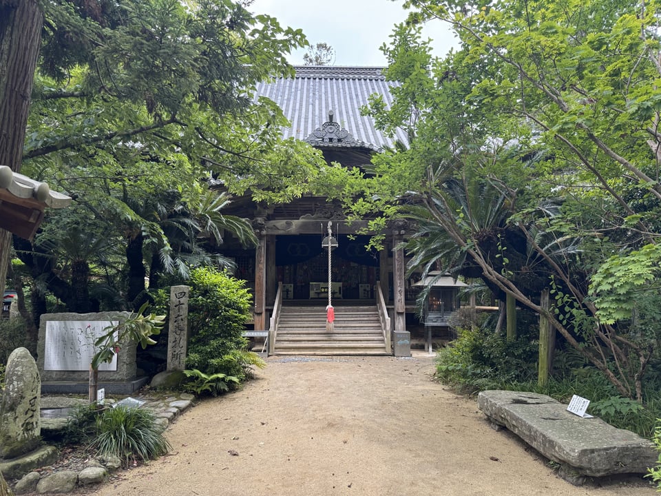 It started raining heavily last night; the island of Kyushu, a bit further south than Shikoku, has declared it the start of the rainy season already, about 3 weeks earlier than is usual. I don’t think we’re quite there yet in Shikoku, but it does feel like it’s coming. If anything, though, temperatures are still mild (think low 70s) through the next week or so. I’ve only got 17 more hiking days ahead of me; it seems like I probably won’t have any weather issues to deal with. But I digress: I woke up, had a better than average breakfast, and waited an hour and half or so for the rain to calm tf down so that I could start walking today. I had a chat with the innkeeper, who suggested I skip the first mountain pass over the day as it’s apparently in really bad shape & the rains probably would’ve made it worse (think mud, blowdowns, slippery bits, all that nonsense). That made sense to me; as much as I wanted to stay off the pavement, that wasn’t going to happen. So I headed off, fully geared up for rain, but it the rain had just stopped and it felt fresh and clean outside.