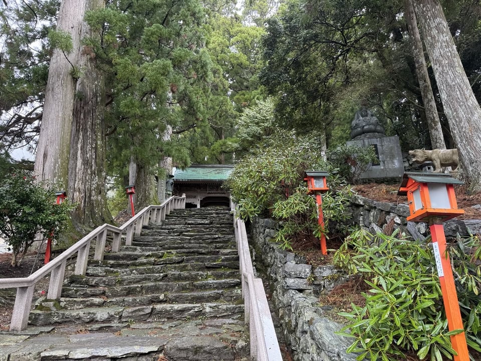 After finally arriving at T12, I was disappointed to find that my dry bag had failed; my stamp book was partially wet and the nameslips I’d packed were verging on unusable pulp. I again joined a tour group at the main hall; lighting candles and incense was nearly impossible given the inclement weather. I tried to warm up for a bit with a bowl of udon and two small cans of hot chocolate from a vending machine, but I was tired, everything was wet, and I was very much looking forward to getting to tonight’s inn, another hour plus walk down the mountain.