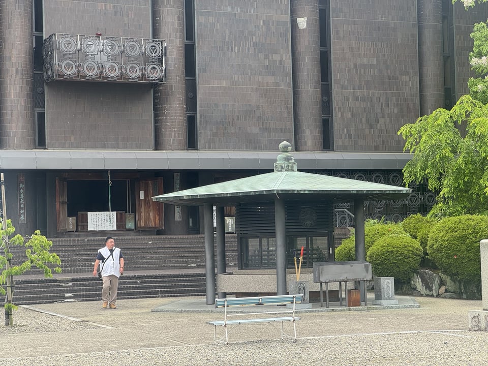 I kept heading west & came to Kichijo-ji, T63 eventually. The path had turned off of the main road and onto side roads some time back; this was somewhat better in that I wasn’t being passed by trucks, but also somewhat worse because old, crappy roads tend to have sharp bits of gravel that are painful to walk on. It wasn’t easy for me to find the entrance there; I spotted a tour bus of pilgrims and hoped I could tailgate them in, but they were headed back to their bus. As luck would have it, the main entrance was closed as they were repouring some concrete, but it was fine; I eventually spotted a small sign and found my way in. This place reminded me of another temple all the way back in Kochi in that its front gates opened directly onto a busy road; not at all tranquil. And really not much at all to the place, save for some very nattily dressed dude (pilgrim? monk? influencer? Hard to say) Creating Content with some guy with a very fancy camera. It was a little odd watching that - but ehhh. They seemed to be really into it. Much to my surprise and delight, the woman who stamped my book etc. gave me an origami crane stamped ‘63’ as well as a snack - yay, more snacks to add to the bag!
