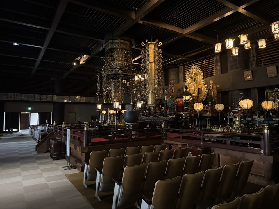 Nothing about this place was normal. I loved it. The two walking sticks are in a traditional holder; that’s not unusual, but everything else sure is! The hexagonal candleholder has a sand-trough around it for incense. And there aren’t separate main and Kobo Daishi halls: it’s all upstairs, accessed via giant staircases on either side. The temple reminded me a lot of the church in Mexico City with the Virgin de Guadalupe: unapologetically modern.