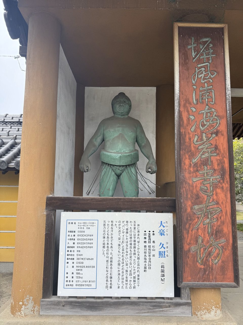 The day’s walking looked to be on the tedious side - almost all road walks, first across to the coast to visit two temples, then back to the East, finished with a long drift North to get to my hotel, a somewhat beat-up roadside rest area with an onsen and (or so they claimed) a theme park. Thankfully, I was extremely well fed, so the walk went by mostly quickly. Now, I think I’ve mentioned the custom of osettai before - that thing where people give pilgrims stuff on the trail - and that happened again fairly early on when a nicely chunky Japanese bear in his 30s pulled over and insisted on giving me something from his minivan - water? no, my pack was too heavy, so… he gave me a pack of interdental picks, which I found hilarious and also incredibly useful (I do love me some high quality interdental picks). He shook my hand, asked me where I was from - I always say California, Los Angeles, and usually say Dodgers with a baseball mime thing, if only because people know who the Dodgers are - and he lit up, happy that I liked Shohei Ohtani. (I mean, I guess I do? I’ve never seen a Dodgers game!) So that was a great start to the day; it felt comfortable and friendly as opposed to that weird haiku-origami-write in my book thing from earlier in the week.