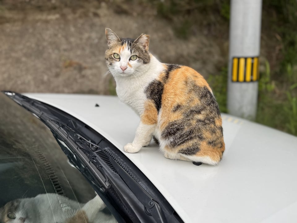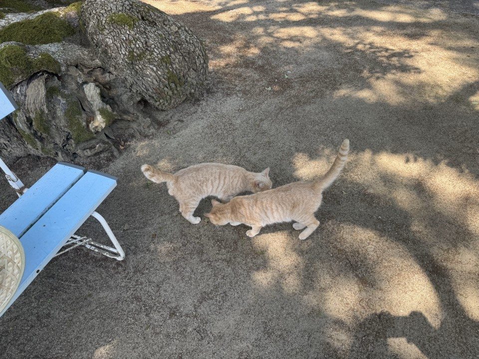 Apologies if I’ve mentioned this before, but there are a few different maps, guides, books, and apps that you can use to find your way around the pilgrimage. There’s a decent English language app called Henro Helper that I enjoy using, but it often imposes its own idea as to what ‘a good route’ might mean. For Kan-onji, though, that was more than welcome. Instead of going straight to T68/T69 - those two temples are at the same location, confusingly - it takes you out of the way a tiny bit to visit two things you might not get to see otherwise: a Shinto shrine on top of the hill next to the beach, and an enormous sand sculpture of a coin that’s said to bring good luck that was constructed centuries ago. It was a slog up the hill, but it was nice to get away from traffic for a bit. At the top, a friendly couple offered to take a picture of me; I won’t post it here, though, because I’m sweaty as hell in that picture. Anyhow, back down the hill and around the back to the Dual Temple Experience: T68 is hiding behind a modern concrete box of sorts, T69 is next door and looks a bit run down, and the monk working at the combined office was the most bored I’ve ever seen one, stuck double-stamping stamp books all day (but at least the site also gets to charge double). Amusingly, there were also twin cats there for some reason; I tried to feed them some of an energy bar, but only one of them took me up on the offer…