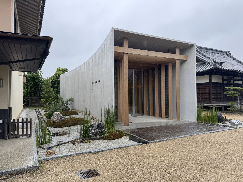 The rain was more like atmospheric mists with attitude, nothing serious, so I wasn’t worried about getting wet. It was in fact a short walk up to the temple; my time there was largely noteworthy because I felt like I had to futz around with this Japanese iOS app that should ping a Bluetooth beacon at the temple and automatically mark me as having visited, but it wasn’t working for some reason. Whatever! I’d tossed all the garbage incense so was back to the nice stuff that smells forest-y; I went through the motions, got a stamp, and happily ran into a modern ossuary (visitors not allowed inside) because of the app shenanigans, so that was awesome: