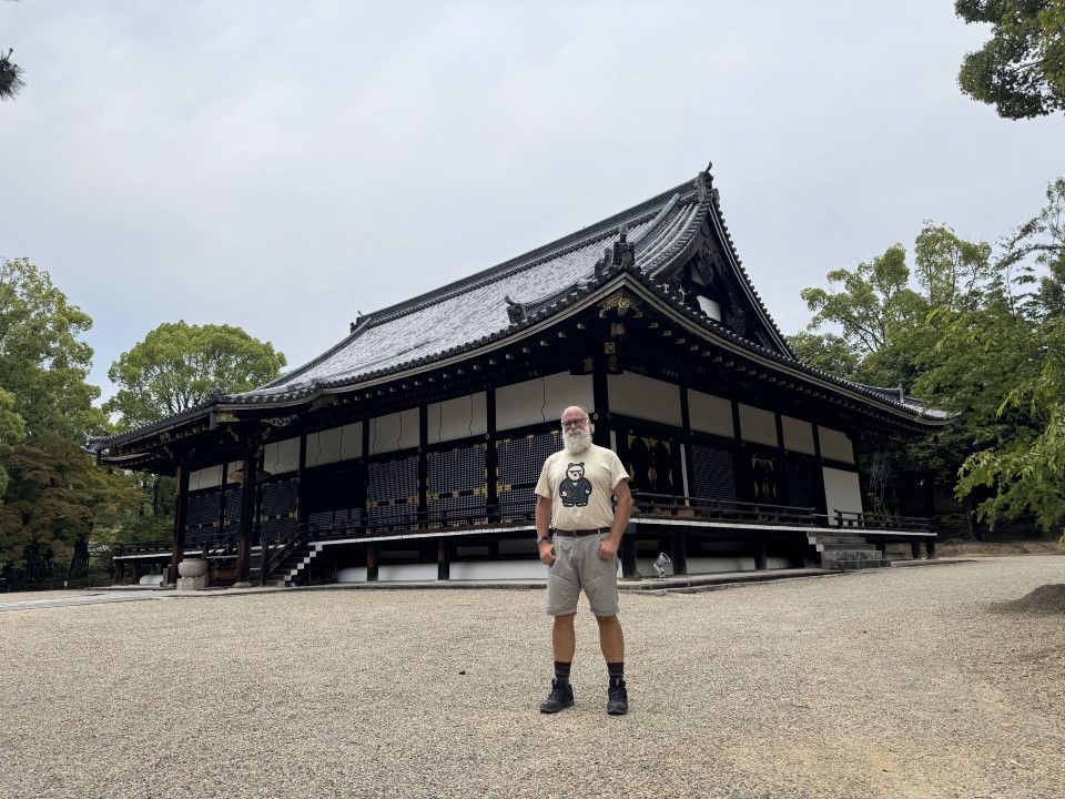 The second temple was straightforward: Google Translate and Google Maps showed me how to get to Ninna-ji without much fuss. Another World Heritage site, it was a spectacular temple with beautiful gardens, an enormous temple, and elaborate souvenirs; I did pay for a receipt of prayers given for a friend’s medical appointment by a temple priest, for example. (And I skipped on their incense, because it didn’t smell great. Dan, you’ll thank me later for that.) And hey, friendly tourists even offered to take my picture for me!
