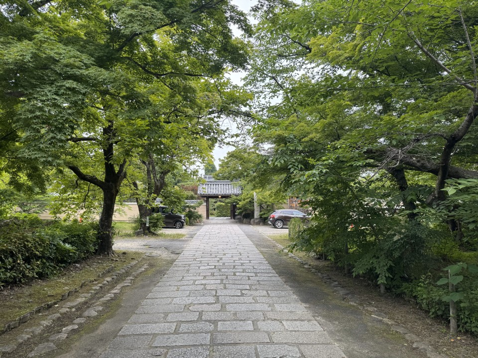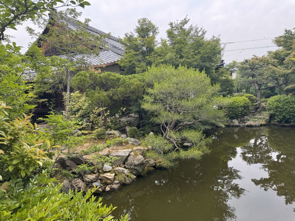 I walked down a long, shady alley of ancient trees to a small, homely temple gate. Beyond that, a modest teahouse to the left, a discreet temple, another building that felt like an disused warehouse. A small pond, a well-worn bench, a moderate wall separating everything from the street to the east.