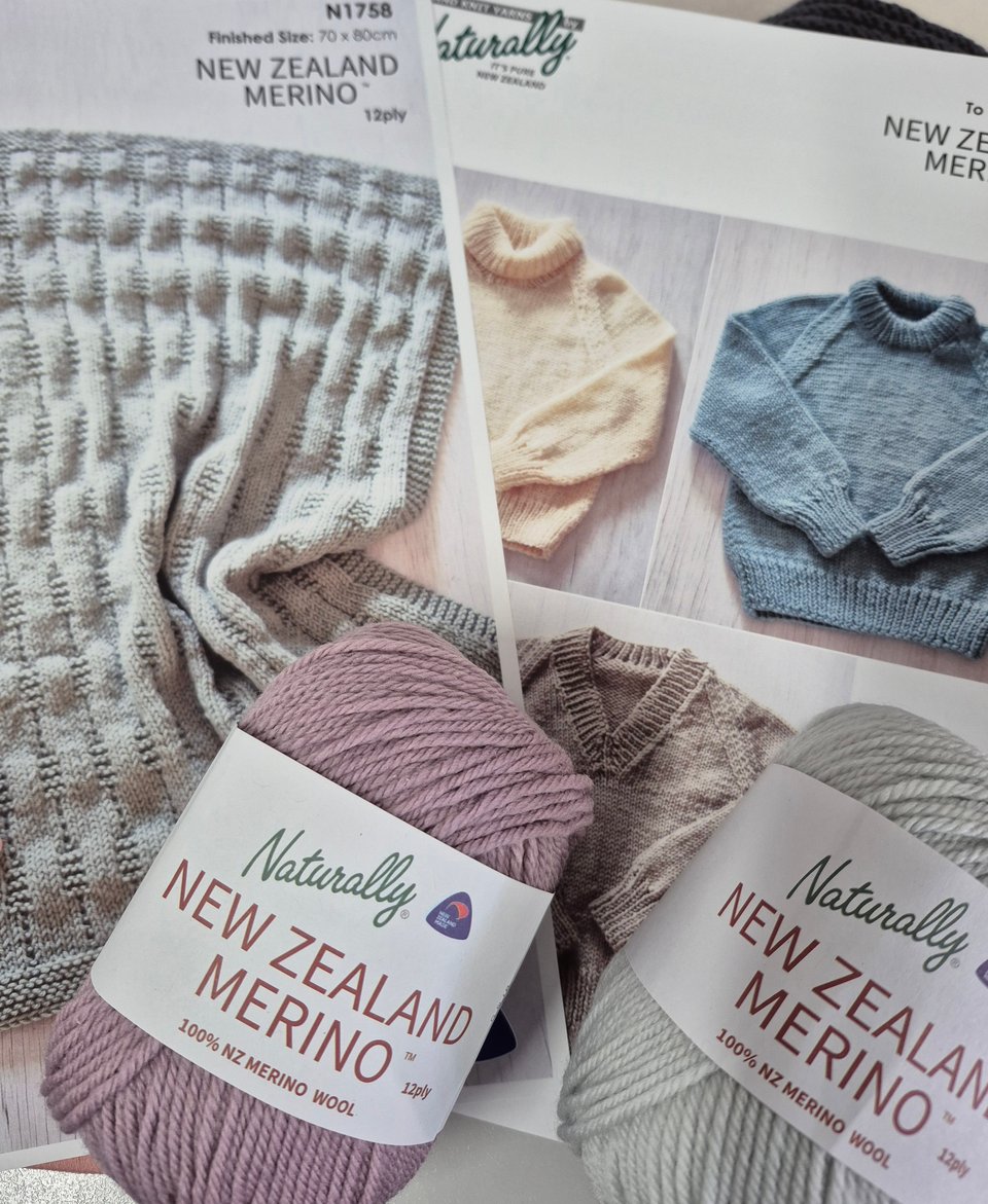 NATURALLY NZ MERINO 12 PLY IS HERE Our beautiful NZ Merino 12 ply is here and there are a few lovely patterns to go with it. This now adds to our NZ Merino range as we have it in 8 ply, 4 ply and now 12 ply. These yarns have great metreage and lovely colours too. This baby blanket and childs jumpers are both available on our website. Click on the pic below to view -