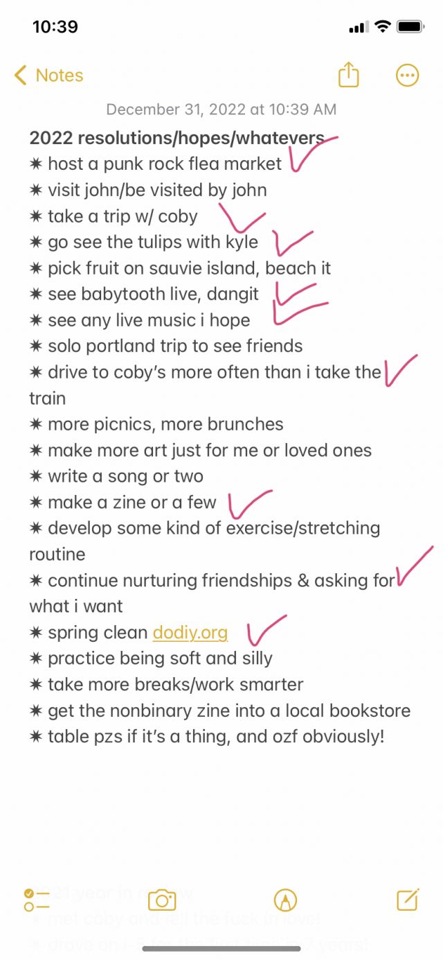 i’d also like to visit sauvie island and the quarry more than i did in 2022. and rest as much as i actually need to, instead of being burned out all the time. i was more tired in 2022 than any year prior. part of this break will be spent trying to completely reimagine how i work/rest.