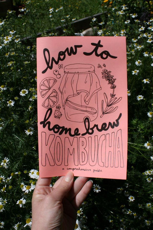 i finished a zine this week, after it sat on my coffee table for the better part of april and may. it's called "how to home brew kombucha." it was meant as a bit of a lark, but it turned into a fairly comprehensive and well-researched guide. reply with your address if you want one! i'll send it to ya for free. it'll be listed in my etsy shop in a few days. here it is, in front of my unruly chamomile patch (if you live in oly, please let me know if you'd like to harvest some chamomile or calendula from my yard. or if you want a scoby! jfc, i have so many scobys right now).