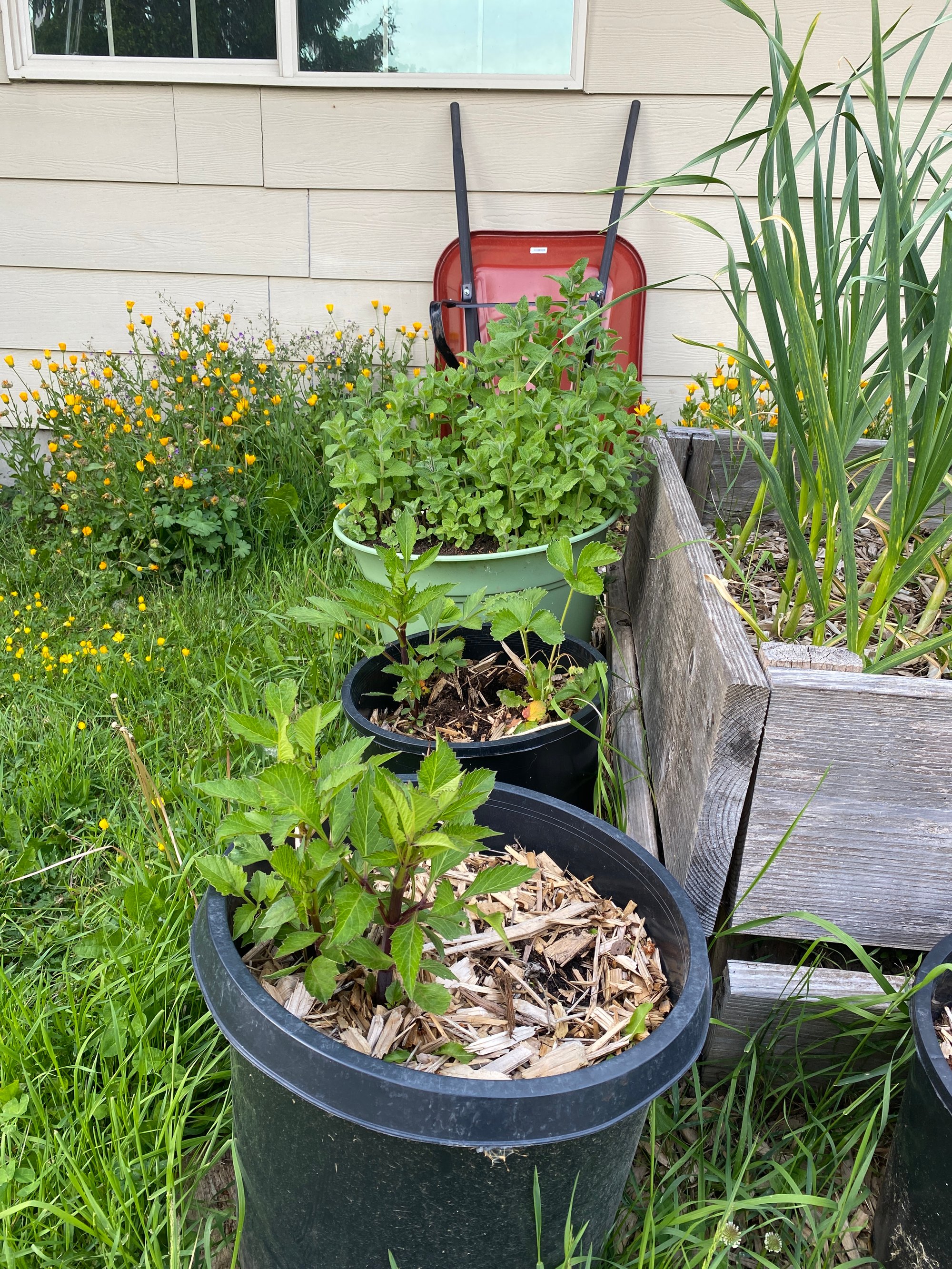 all my berries are either flowering or forming (strawberries, blueberries, blackcap raspberries, red raspberries, thimbleberries, and our native trailing blackberry volunteer)