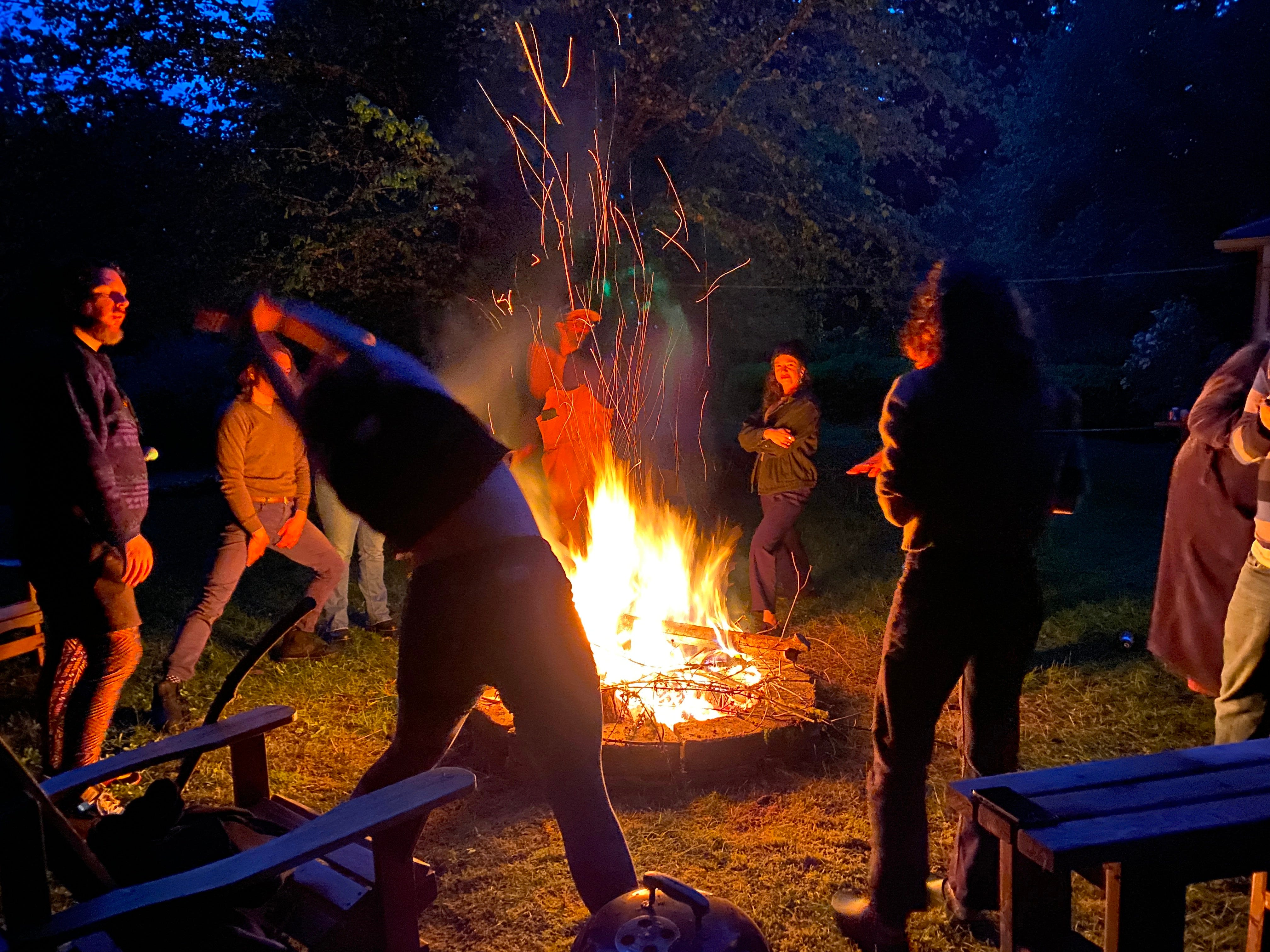 went to a lil shindig for decay staff where we walked in the woods and had a fire together (and found some HUGE newts!)
