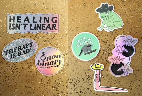 i have 7 new sticker designs available, on etsy and in my webshop respectively. i'm planning on putting together some sticker bundles and pressed flower pins for the holidays when i find the time.