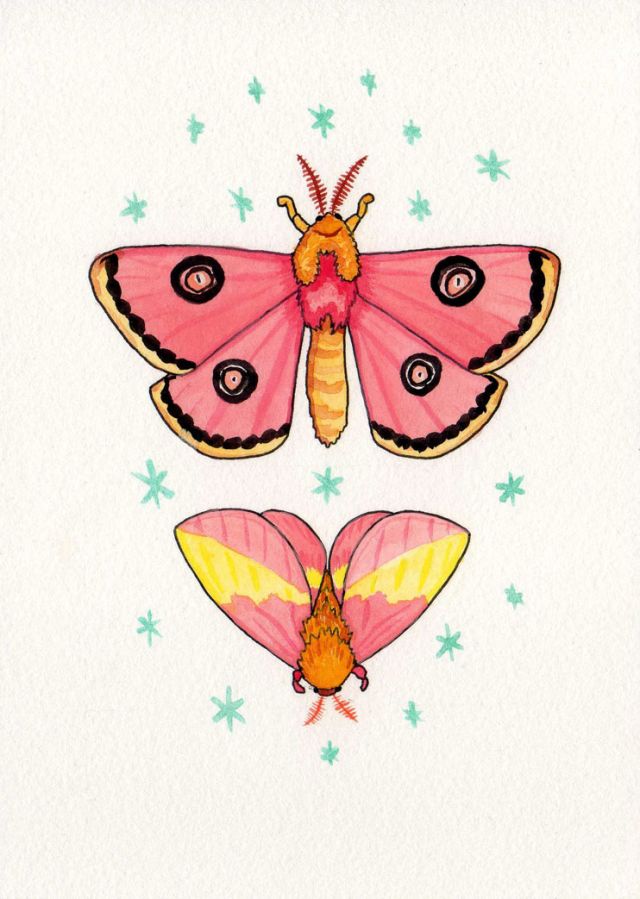 if anyone needs some exceptionally upbeat, fun music to listen to, cheekface is my current recommendation. i've been concocting winter survival plans (i consider post-halloween to be winter, especially here in the pnw, call it a side effect of seasonal affective disorder). these plans include a "stay sane phone tree" to remind myself that i have friends, and shockingly, it makes me feel good when i talk to them on the phone. i'm enjoying the process of working on a new zine that involves drawing tiny things, as small art is very much my comfort zone. i've been playing guitar again for the first time in forever. i also picked up my watercolors this month and painted some moths, i'm hoping to make more time to paint bugs in the future. y'all are the first ones that get to see this painting.