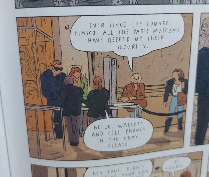 Spending a couple of paragraphs on the characters should tell you the direction of the story. It’s more interested in the characters, their relationships, and the time in-between jobs. There is a strong hangout vibe to the story. Which isn’t to say that the book skimps on the action. I mean hell, if you ever saw the pyramid in front of the Louvre and wondered about a motorcycle using it as a ramp to crash into the museum in a way that even Evel Knievel would deem reckless, this is the book for you.