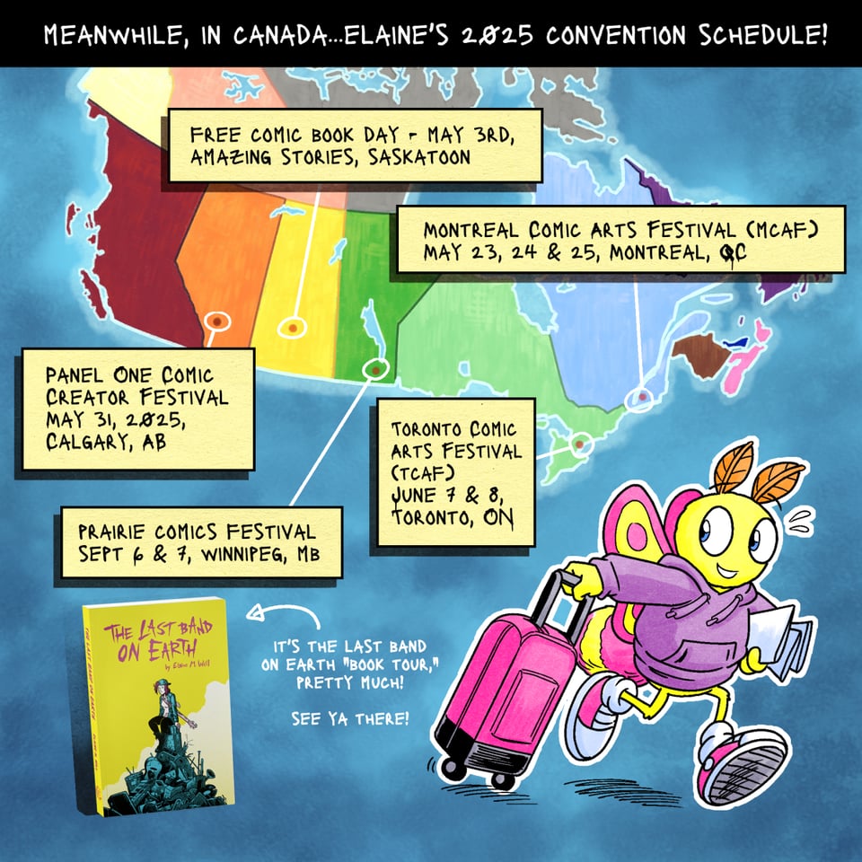 I’ve closed my Ko-Fi shop temporarily in light of the Canada Post strike, as this means there’s no Large Letter option for me to send out comics and prints. Hopefully I can open it again soon – in the meantime, if you will be at TCAF and would like to pre-order a copy of Last Band directly from me, you can donate $25 or more to me through this link. Just show me your receipt and I’ll hand over a book! In person! Wow!