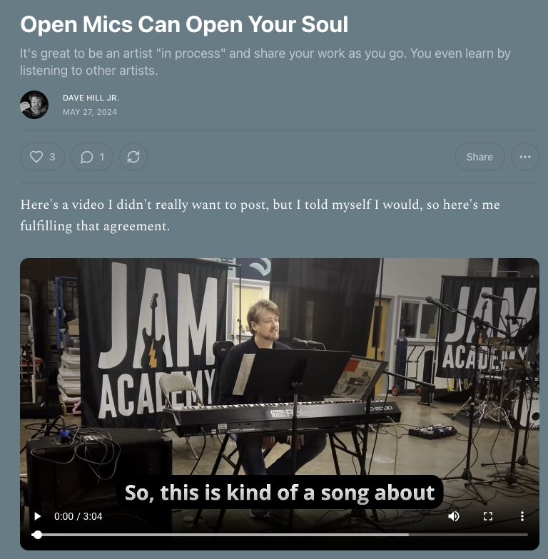 Songwriting demo and breakdown of my song Over the Line https://youtu.be/P39VJUzMGHI?si=O421aEXM-4HhoE99 where I talk about my process and lessons learned. Here’s the blog post to go along with the video.