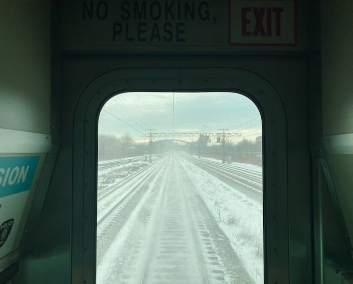 A snowy train ride to the loop on a chilly morning earlier in the week.