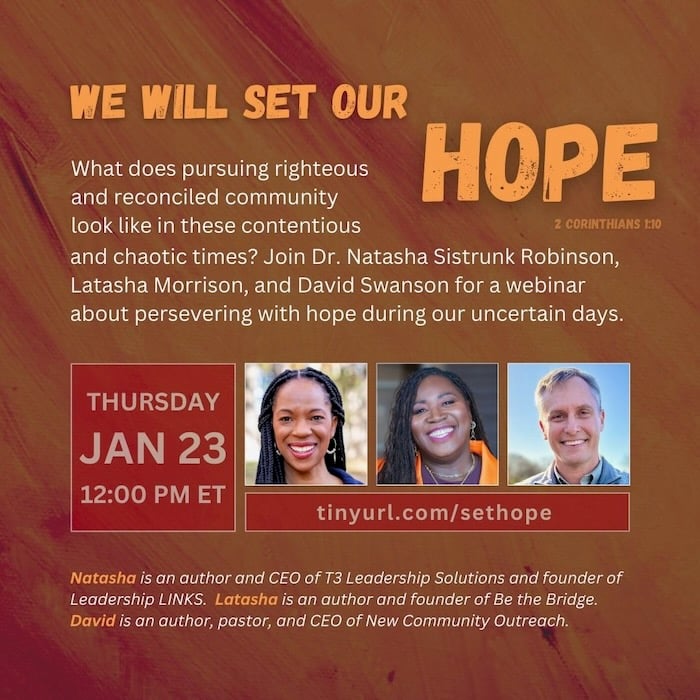 In the aftermath of the presidential election, I’ve been connecting with my friends Dr. Natasha Sistrunk Robinson and Latasha Morrison. It’s clear to us that the days ahead will call for courage, wisdom, and hope. During one of our conversations Natasha shared 2 Corinthians 1:10, “He has delivered us from such a deadly peril, and he will deliver us again. On him we have set our hope that he will continue to deliver us.” This promise has become a helpful frame as we consider the ministry of reconciliation amidst pervasive turmoil, polarization, and opposition.