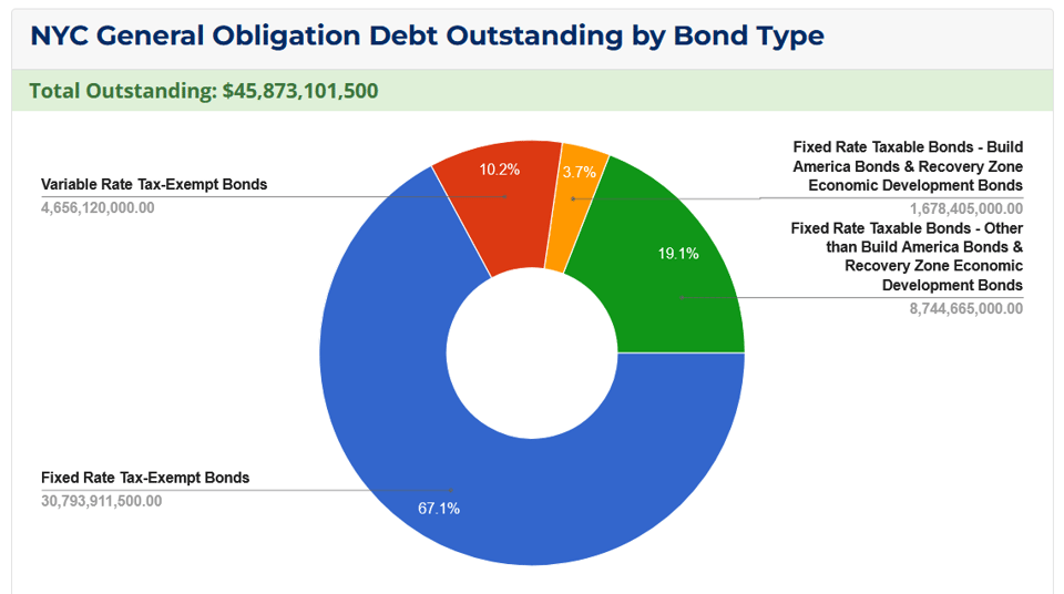 That’s right, the city has $45.8 billion in total outstanding debt service, about 10% of which is in variable rate instruments. So a lot of the money I just talked about will probably go to servicing this debt, which is what ultimately finances schools. The tax revenues just repay that debt.