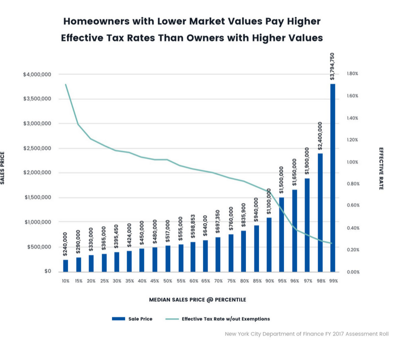 While their numbers are from 2017, this TENNY graph charting the effective tax rate (green line) vs. assessed value of the property (blue bar) is wild: