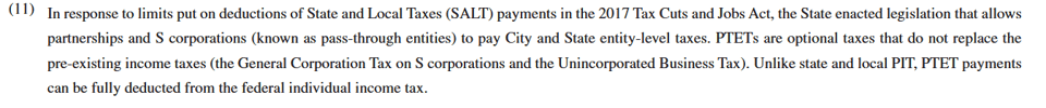 Note the pass through entity tax above, which is an interesting beast, just so we’re clear: