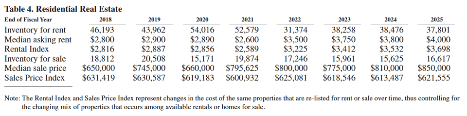 You can see here that rent is increasing, stock is decreasing, and sale prices are increasing—which means taxes collected go up.