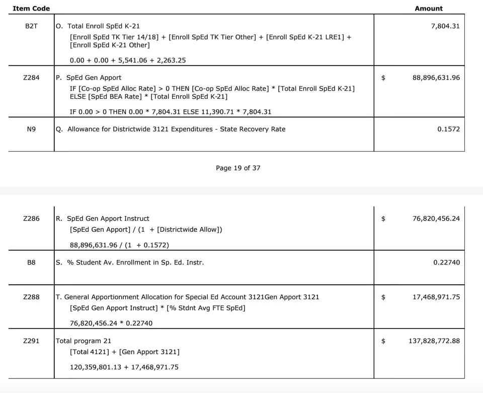 So basically you can’t have too many disabled students. If you have more than 16% of your total enrollment, you get adjusted down relative to that number. The state doesn’t want to pay. Looking at the 24-25 budget, here’s how it actually works.