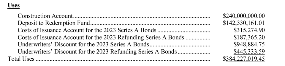 But also look where the money is going. $240 million is going to the construction account and $142.3 million is going to the "Deposit to Redemption Fund." I wonder what's happening with that DRF? Is it like a sinking fund?