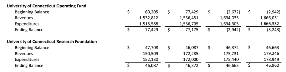I have questions though. What's up with the "University of Connecticut Research Foundation"? It's pretty flush with a beginning balance that's more than two-thirds the operating fund. It's money is going up actually!