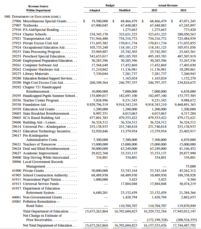 The NYC department of education is just that: a department of the city government. It’s not quite a district with relative autonomy in the same way that many districts across the country. So I’m going to start with the 2025 Comptroller’s annual comprehensive financial report, the most recent set of numbers looking at the city’s finances in terms of broad revenues and expenditures for schools.