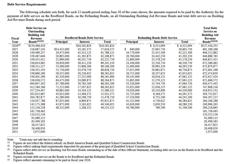 Where does this debt go? Here’s a breakdown of repayment of interest and principal from a recent building aid revenue bond statement, p. 29.