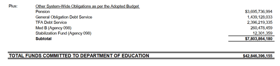 So we can confidently say that the DOE has actually about $3.7 billion of outstanding debt service, broken down as $1.44 billion general obligation debt and $2.4 billion in TFA. That’s an increase of $300 million from the last time the DOE made the pie chart above.