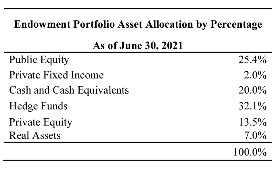 These endowments are typically managed by subcommittees of the university board of trustees, who in turn hire financial consultants to assess the funds’ health and ensure maximum returns following actuarial protocols. As a rule, the itemized composition of investments in the funds are difficult to access. They’re hidden. What one can find are overall percentages of endowment investments. I’ve looked at this for several universities and get to the same dead end every time, but it’s helpful to trace them nonetheless.