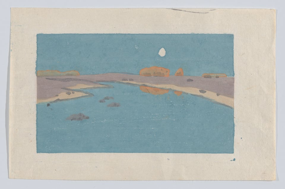 Arthur Wesley Dow’s Marsh Creek, above, stood out for its color palette. The imprecision of the layering, built up over multiple woodblock prints, suits the setting.