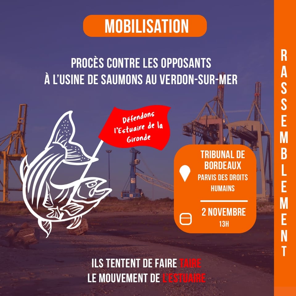 PURE SALMON, un fond singapourien inconnu, souhaite fabriquer 10 000 tonnes de saumon d'élevage sur le site du terminal portuaire du Verdon-sur-Mer en Gironde. Une seconde demande d'autorisation vient d'être déposée après que la première ait été refusée, notamment pour des inquiétudes concernant l'intégrité des nappes phréatiques assurant notre alimentation en eau potable.
