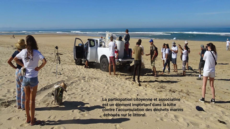 8h30, dimanche matin 1er octobre, 35 bénévoles se sont rassemblés à la plage des Casernes de Seignosse pour une opération de nettoyage de deux zones de 200 et 600 mètres de long, sur les deux communes de Seignosse et Soustons et situées, non pas sur la plage, mais sur le versant océanique de la dune landaise. Ces zones inaccessibles au nettoyage mécanique intensif (et excessif) que subit la plage sont constellées de vieux plastiques depuis que les terribles marées de l'hiver 2013-2014 ont sapé le pied de la dune, créé des falaises de sable que les vents ont ensuite lacérés de « caoudeyres » spectaculaires. L'érosion dunaire met ainsi au jour des masses considérables de plastiques dont l'origine posait question. Décharge sauvage d'origine terrestre des années 60 ou bien apports marins de déchets provenant eux-mêmes de décharges lointaines, notamment d'Espagne ? Dans les deux cas, l'érosion de la dune démontre que l'enfouissement, légal ou pas, aboutit à un échec. L'urgence est d'évacuer ces déchets très anciens en cours de fragmentation irrémédiable vers un nombre infini de débris minuscules qui envahissent tous les compartiments de l'environnement, y compris les organismes vivants comme les oiseaux ou les humains.