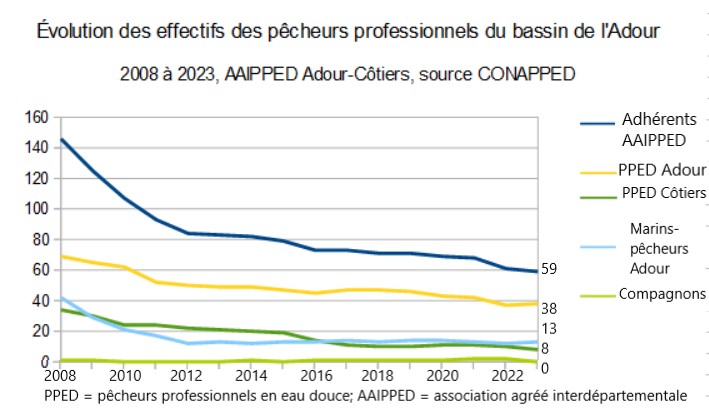 LES EFFECTIFS DES PÊCHEURS PROFESSIONNELS EN EAU DOUCE DE L'ADOUR EN BAISSE CONTINUELLE